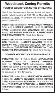 The Town Development Review Board will hold a public hybrid meeting at 6:30 PM on Thursday, December 11, 2025, to consider the following zoning permit application: