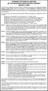 Warning for Annual Meeting of the Mountain Views School District